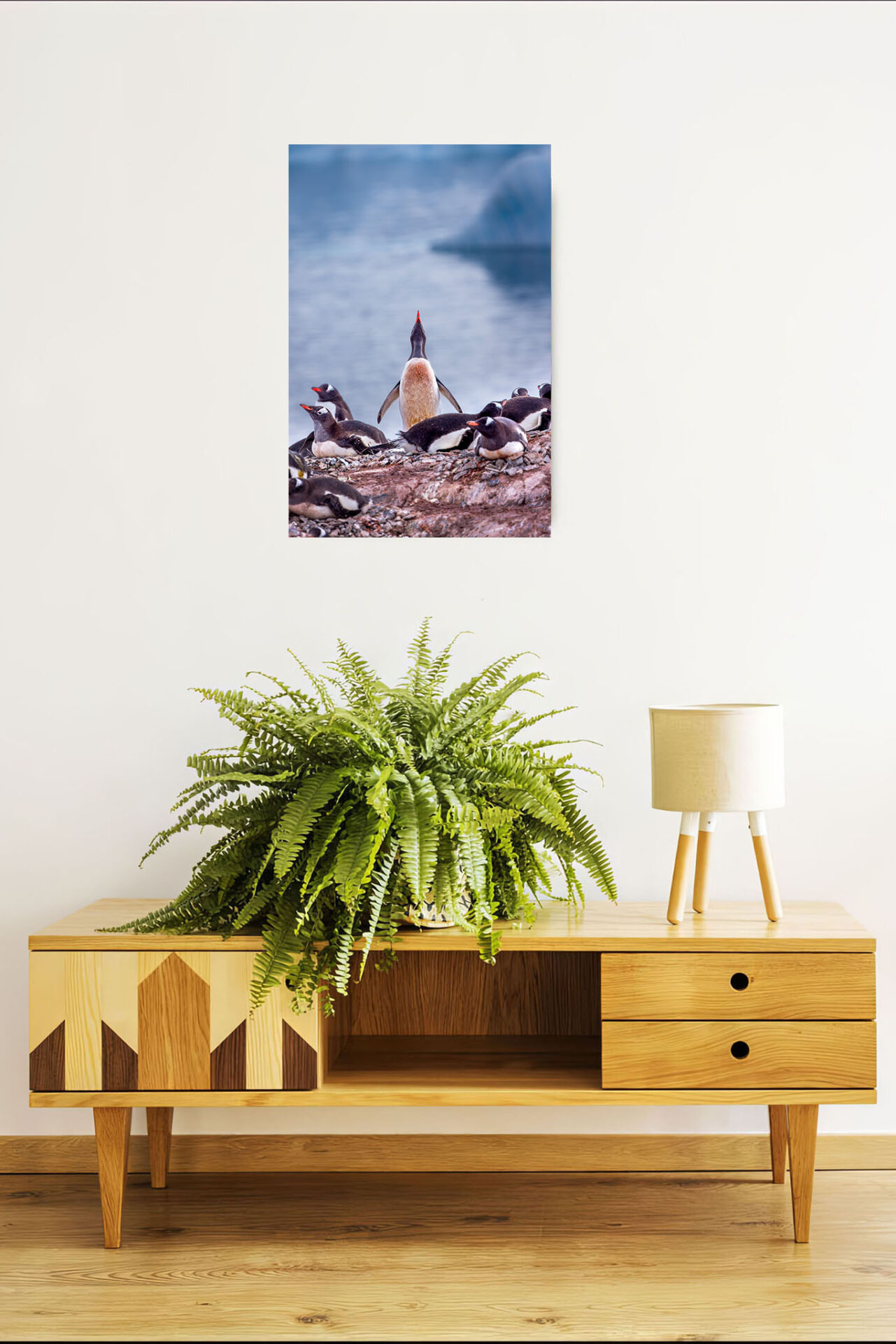 This vertical orientation print makes a beautiful wildlife scene in a living room, study, or office. Penguins in their natural environment in Antarctica. Gentoo Penguin Squawking offers a striking subject against a beautiful background.