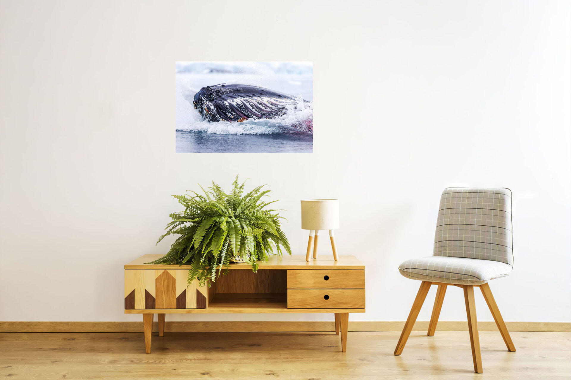 This horizontal orientation print makes a beautiful wildlife and nature scene in a living room, study, or office. Humpback Whale Lunge Feeding offers a Humpback Whale in its natural environment in Antarctica exhibiting dramatic natural behavior.