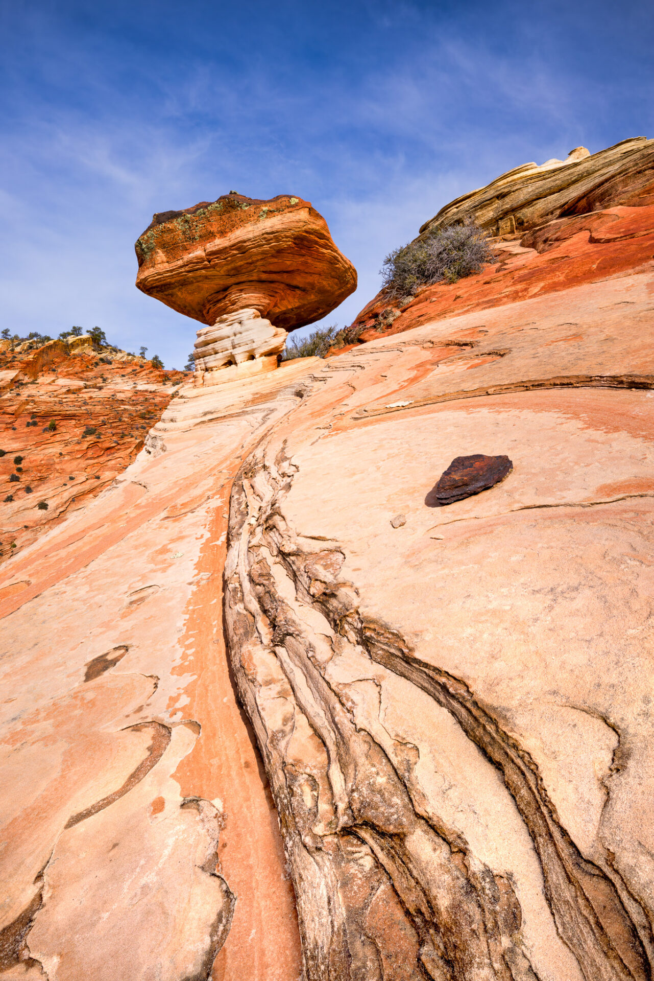 - Beautiful and unusual rock art – Amazing balanced rock feature with wonderful leading lines in a hidden location in Zion National Park.